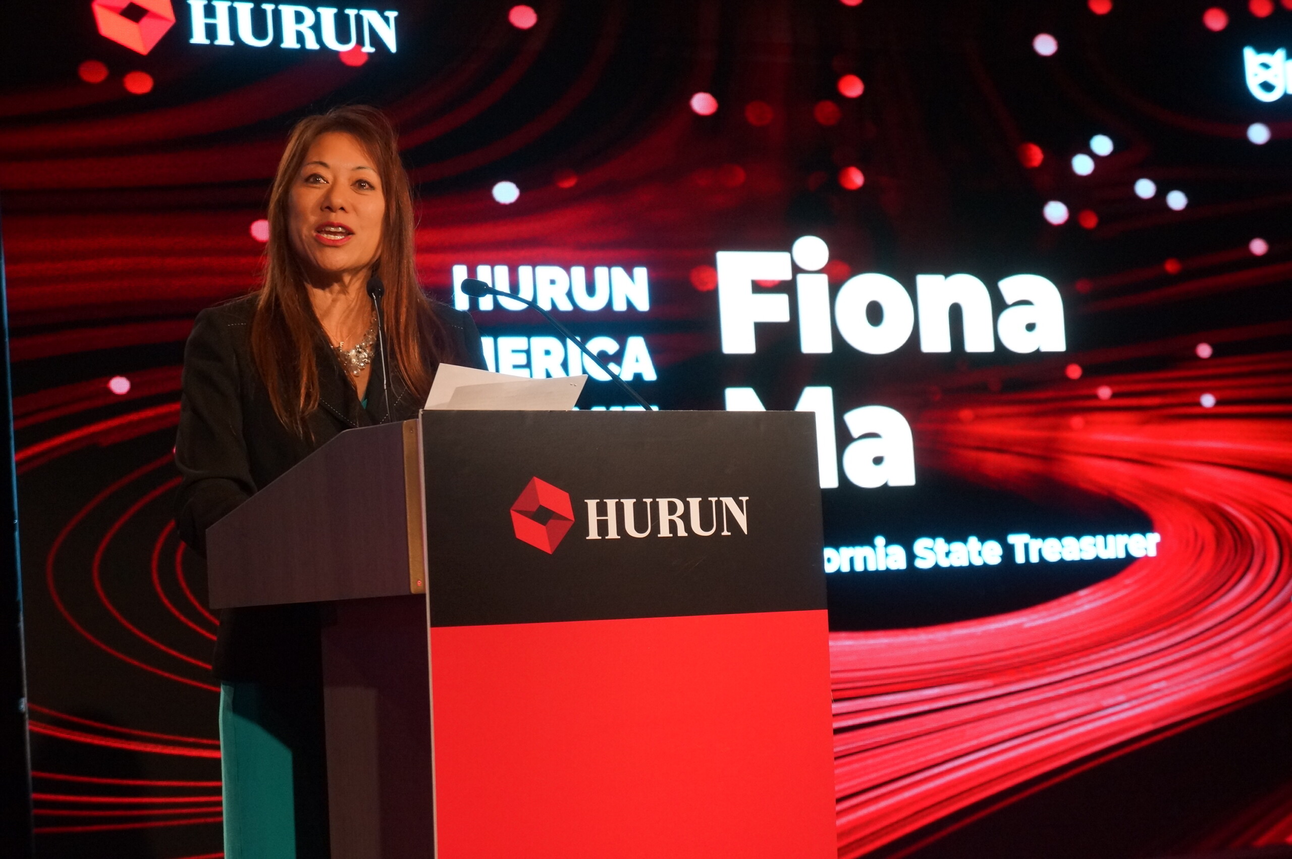 On 11/10/2022, California State Treasurer Fiona Ma was invited to give a speech and congratulate the Hurun awardees at the HURUN AMERICA Awards 2022 Gala at the FAIRMONT CENTURY PLAZA of Los Angeles. The Hurun Awards are given on an annual basis to recognize organizations and individuals who have made outstanding achievements in their own business fields as well as people who have made significant contributions to their communities. During the event, the audiences learnt from the successful Unicorn/U30s Start-up founders, Venture Capitals, and CEOs of Multinationals/Established family businesses. It was a great night full of knowledge, inspiration, recognition and celebration of America’s best and upcoming Companies, Venture Capitals, and Entrepreneurs.