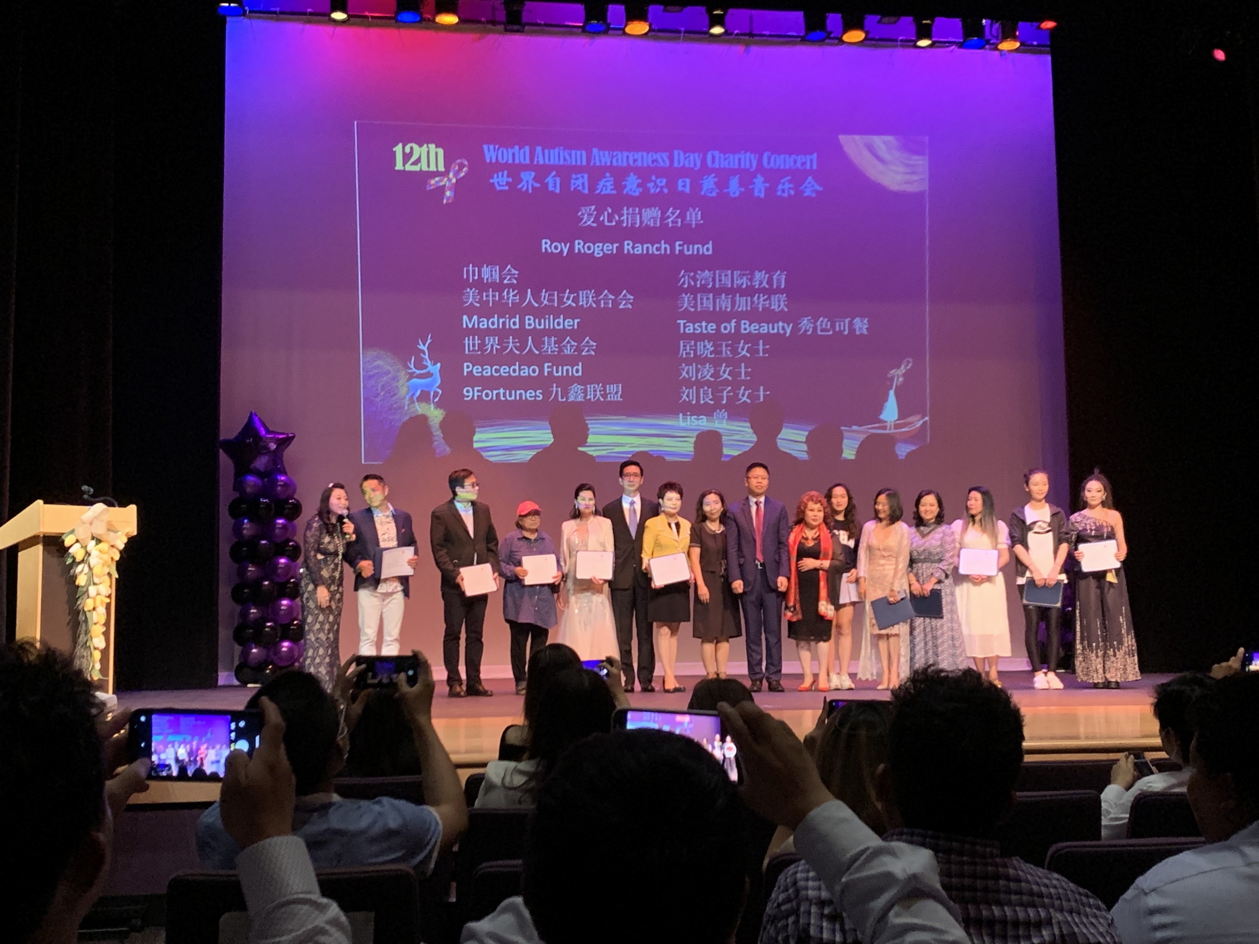 On 5/15/2022, Daniel Sieu, Chairman at William Stephanie Foundation and Representative for Hon. California State Treasurer Fiona Ma, was invited to the World Autism Awareness Day Autistic Children Charity Concert. On behalf of Hon. Treasurer Ma, Mr. Sieu gave certificates to the hosting organizations (ACICATA, Franklin Foundation, and World Madam Foundation) and also recognized their contribution to the autistic children and their families.